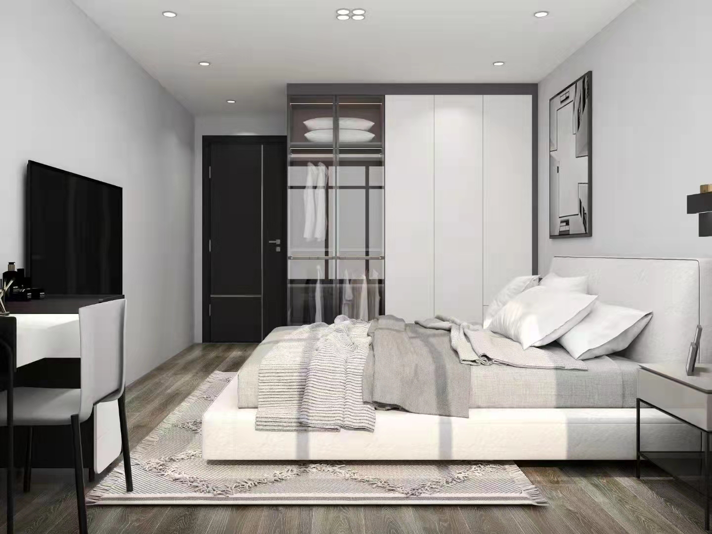 最后就是配色了,不是说一定要是黑白灰,但最好还是素净些,没有繁杂的配色,整个空间也会随之变得柔和轻盈。这样的衣柜设计,只会随着时间越看越满意,你们觉得呢?